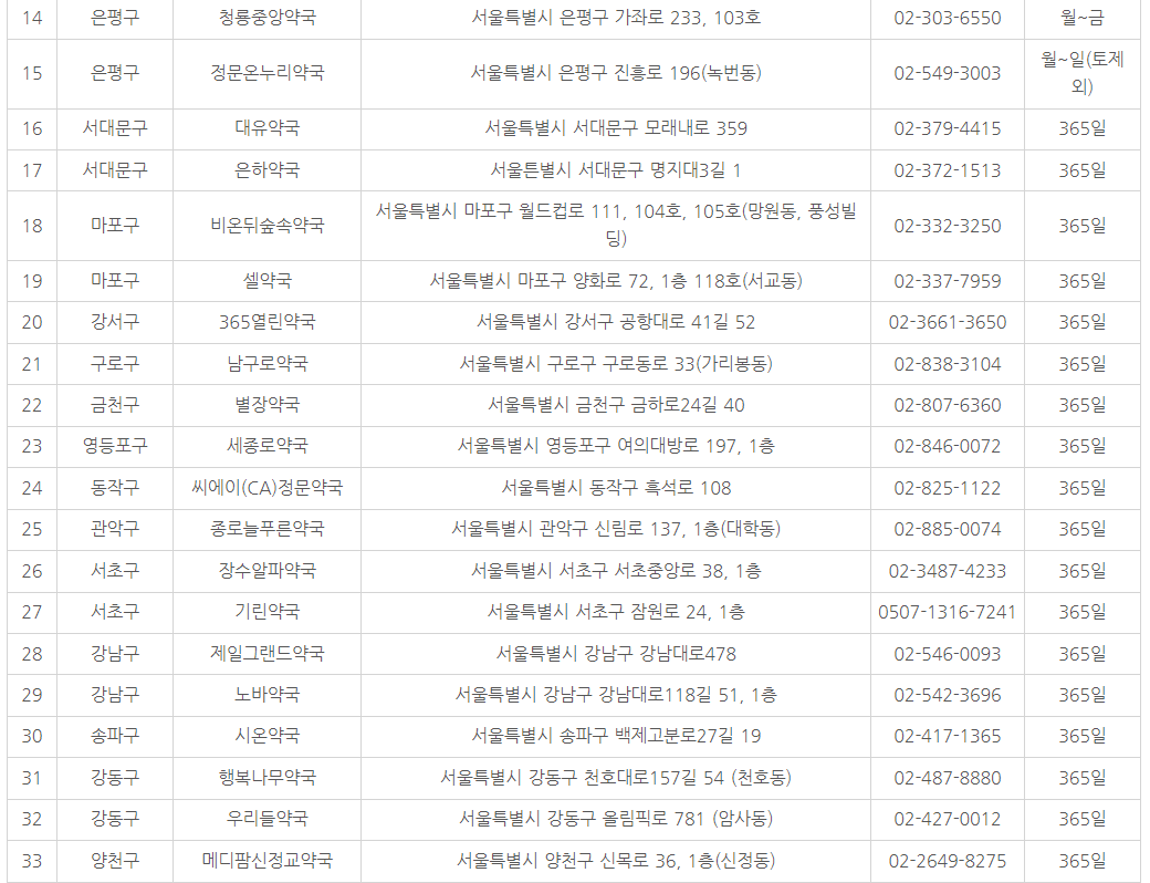 ▶ 서울시 공공약국 지정 현황을 아래에서 확인해 보시길 바랍니다.