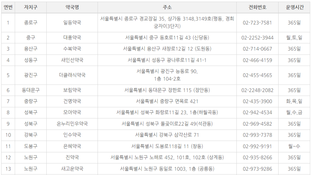 3. 서울시 공공야간약국